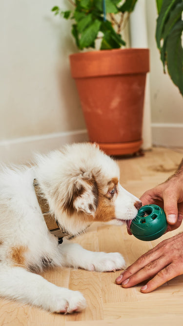 La Popball est un jouet distributeur conçu pour occuper ton chien en douceur. Facile à remplir, à nettoyer et réutilisable avec des recettes maison ou nos recharges prêtes à l’emploi.